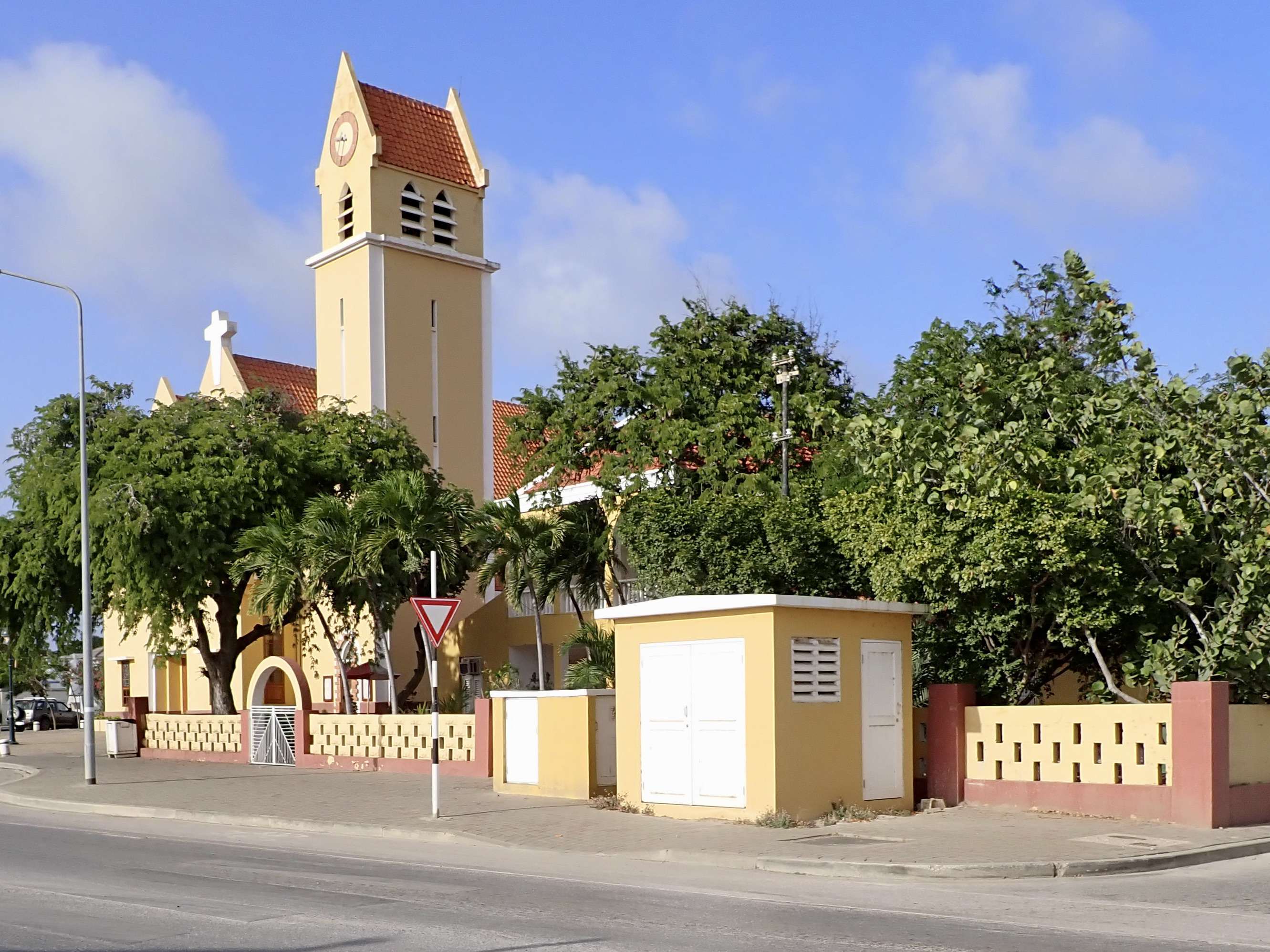 Oranjestad, the capital and largest city in Aruba is on the west coast of the south side of Aruba. It is teaming with shops that sell everything between inexpensive souvenirs to very high end jewelry and designer clothing. Passengers on enormous cruise ships disembark in Oranjestad to explore and shop unless they have elected for one of the pre-arranged excursions they can take. The majority of large resorts and beach bars are nearby. The vegetation in the city and vicinity has been coerced into lovely native landscaping.