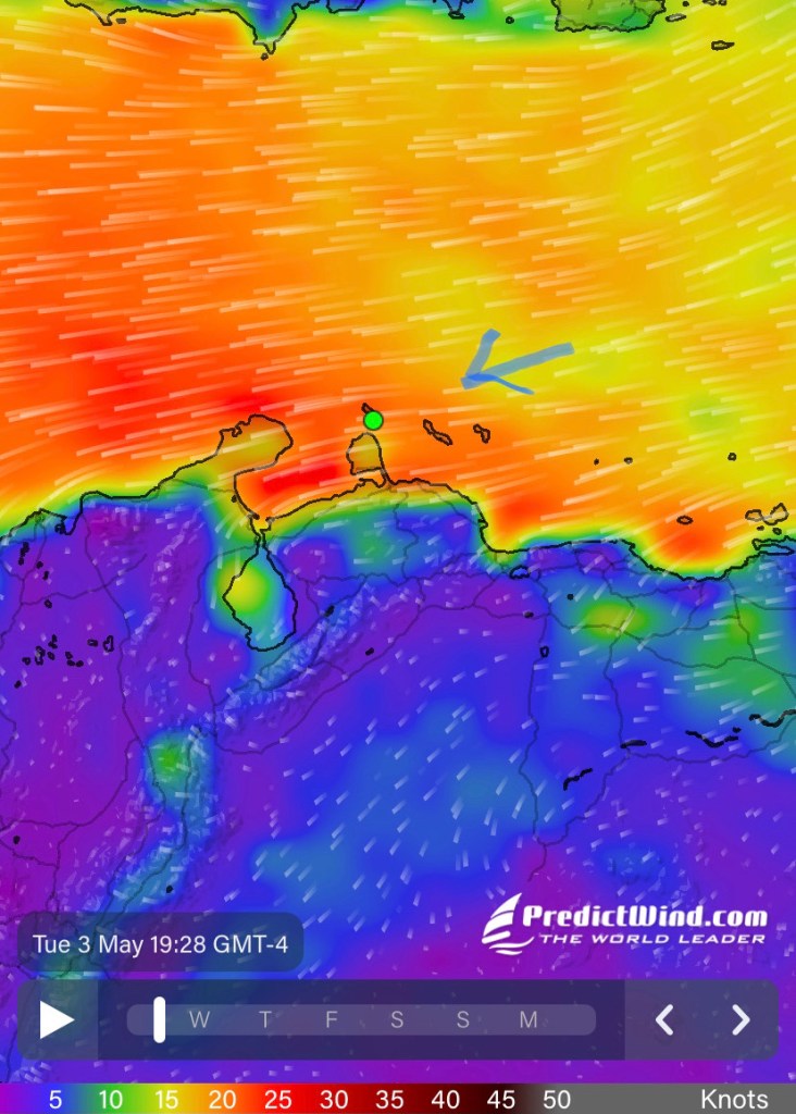 Aruba, as well as all of the ABC islands were having unusually frequent, heavy rain, even given that it was nearing the end of the wet season. These winds were accompanied by squalls, and given the fact that a sail from Aruba to Curaçao, entailed unfavorable wind and current under the best of circumstances, we knew it could be some time for a favorable weather window. We expected to spend a week or so in Aruba before heading to Curaçao.