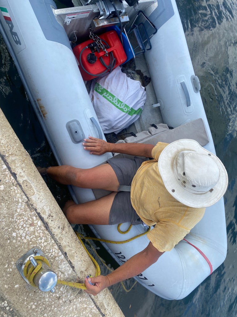 In the meantime we had two planned projects: 1) to have the salon upholstery cleaned and 2) to replace our anchor chain (although the existing chain was only 5 years old, it had become so rusty that flakes of rust had bridged a gap between part of the stainless steel windlass and the aluminum hull and the resulting electrolysis had begun to create pits in the aluminum. NOT at all acceptable!!