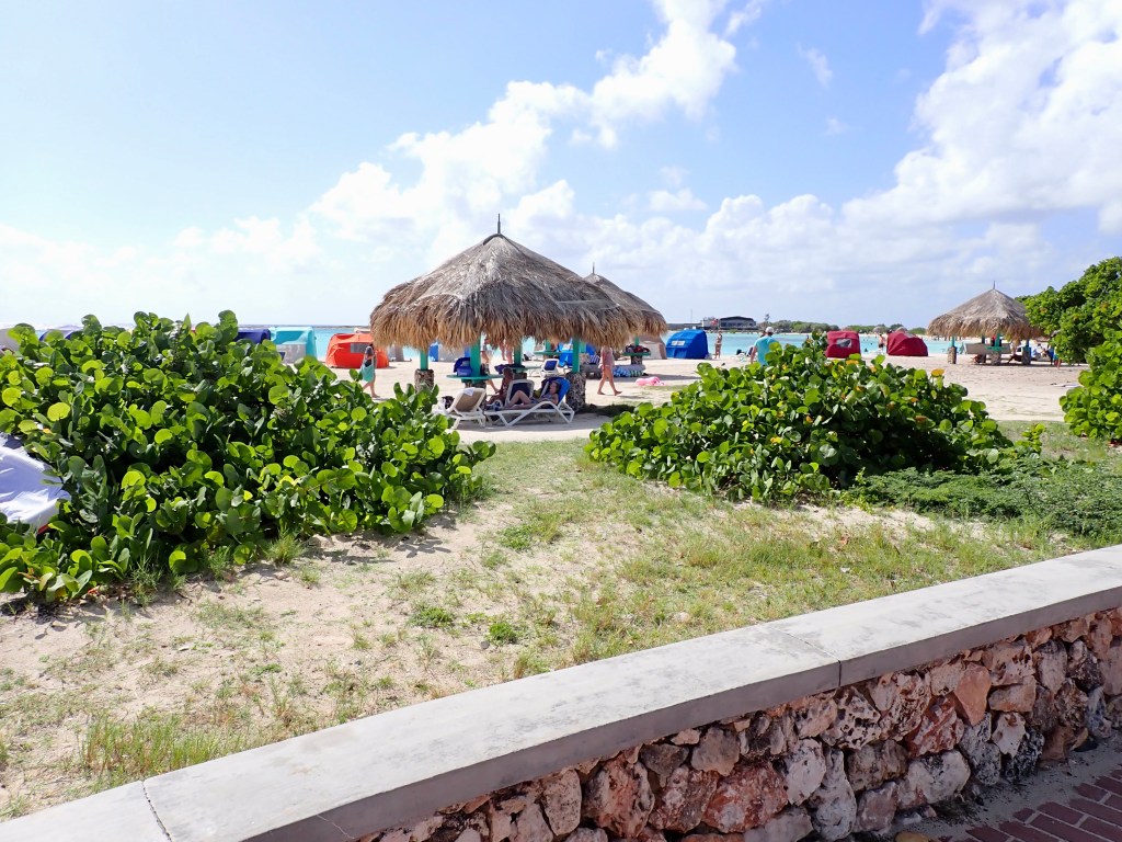 On the south end the most popular beach with refreshments, shade, and lounge chairs is Baby’s Beach