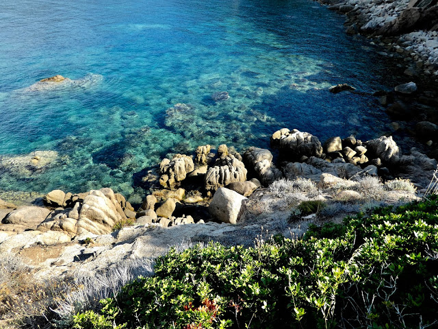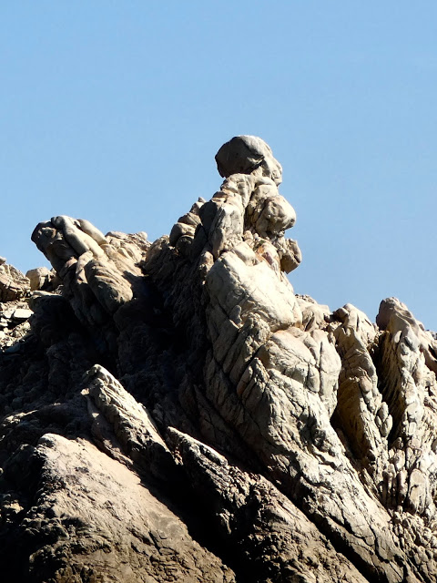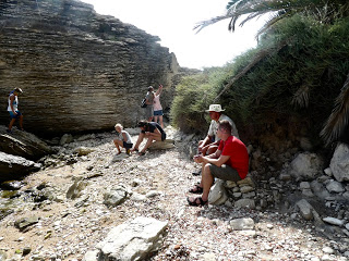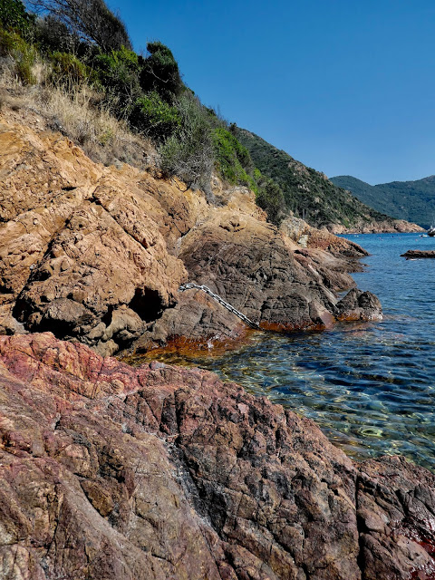 The following day in St. Mandrier we (including Tristan) swam off the pebble beach. It was COLD, but I expect a few degrees warmer than in the deep waters of the calanques. There was a steep bank into the water and between that, the rocks, and some waves, I found it relatively easy to get in (I fell). George and Mike were last in (inching in is the worst!!).