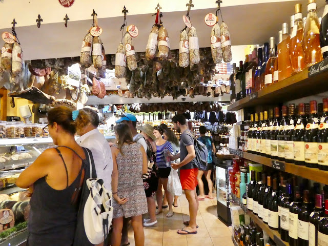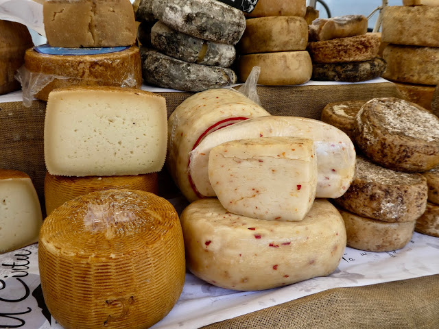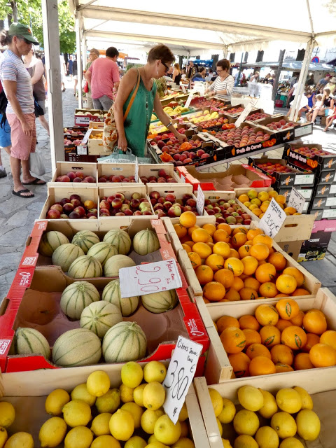 We were lucky to be in Cassis on Market Day. All villages of a reasonable size have an open air market one or two days a week. They can vary in how large they are and what is for sale. Often, it is a combination of fresh (in season, local) vegetables and fruits; cheeses, fresh meat and seafood, eggs, dried sausages, rotisserie meats, olives, olive oil and tapenade, bread, clothing, occasionally a “euro” stand with hundreds of different items for 1 euro, some crafts like soap, or jewelry, and pretty much anything someone wants to sell who is willing to rent a booth. They are always lively, colorful and fun to peruse.