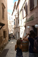 The water was frigid, but Allison and Riley swam to the shore. Tristan was kind of pushed in and had barely touched the water when he levitated up and scrambled onto Allison, protesting loudly. He decided to pass on swimming, as did the rest of us. Water temperatures in Cassis in June are historically a bit less than 70 degrees F.