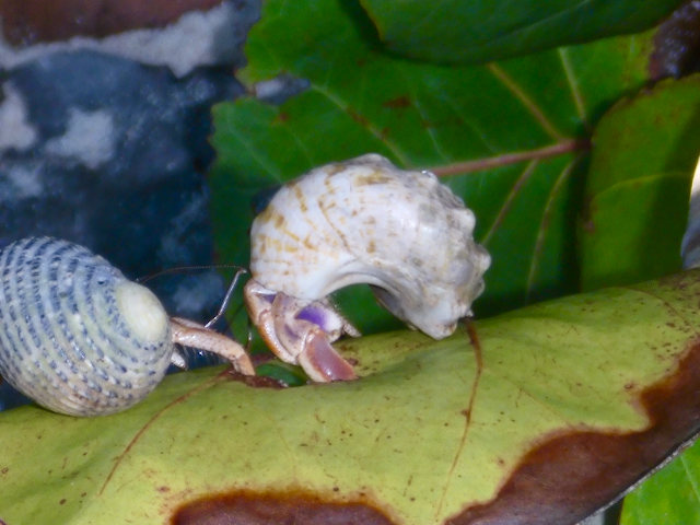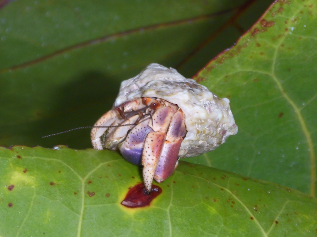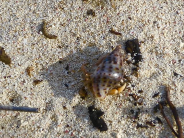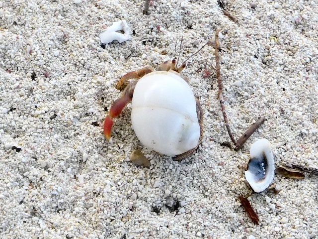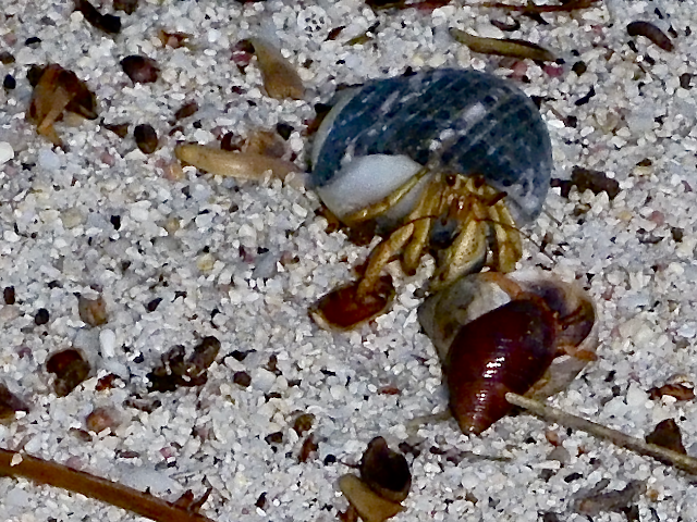 Our initial encounters were with hermit crabs in the sand.
