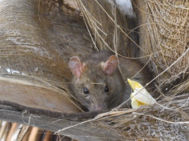 The photo of the cute little rat at the beginning of this blogpost was first seen less than two feet from George’s right shoulder. I said “George, there is a rat – right there – pointing”. George asked “Where?”, a bit alarmed. I pointed again and George, now seeing it, quickly retreated to a safer location. I then kept staring at the rat, who kept very still in hopes I did not see it. George pulled the camera from our pack and I captured this adorable shot.